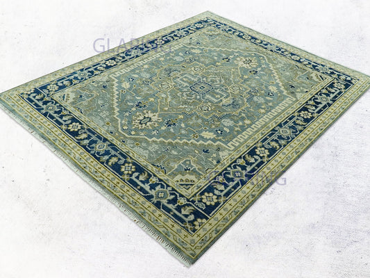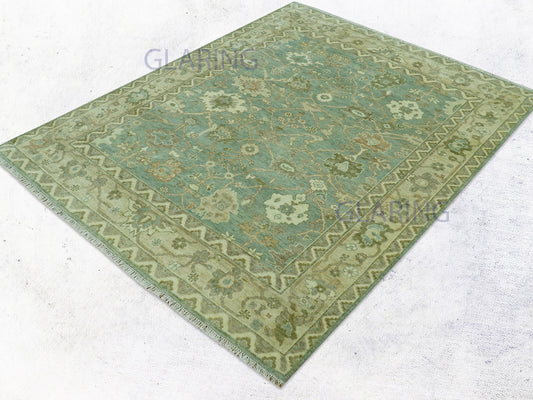 Hand-Knotted Traditional Rug | Oushak Design in Green