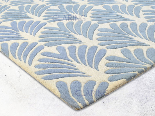 Handmade Hand-Tufted Modern Rug | Floral Design in Blue & Ivory
