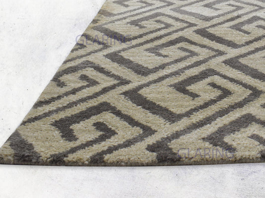 Handmade Moroccan Rug | Scroll Tile Design in Grey & Ivory