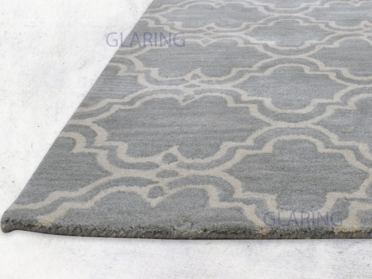 Handmade Hand-Tufted Wool Modern Border Light Gray Silver Area Rug
