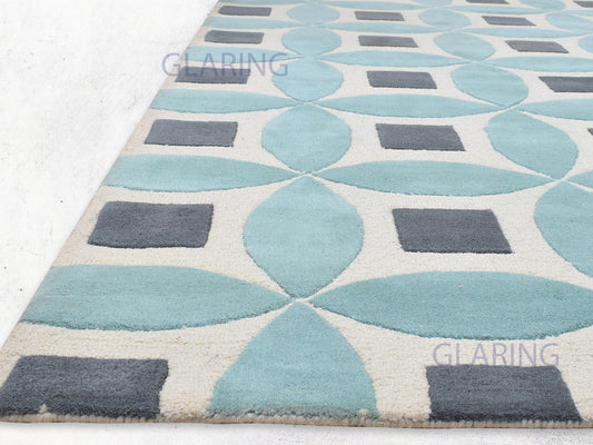 Regular price From $86.25 USDRegular priceUnit price / per$172.50 USDSale price From $86.25 USDHandmade Hand-Tufted Wool Modern Border Silver Teal Green Area Rug