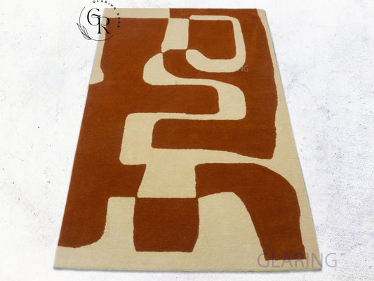 Abstract Terracotta Wool Rug | Hand-Tufted Geometric Rug