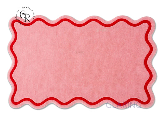 Hand Tufted Wool Rug | Pink with Red Wavy Border