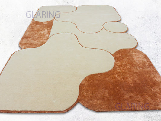 Beige & Terracotta Modern Geometric Abstract Area Rug :Hand Tufted Wool Viscose Rug