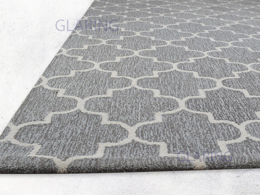 Handmade Moroccan Rug | Scroll Tile Design in Grey & Ivory