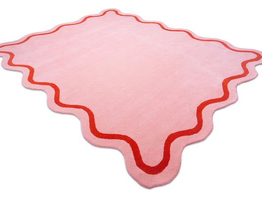 Hand Tufted Wool Rug | Pink with Red Wavy Border
