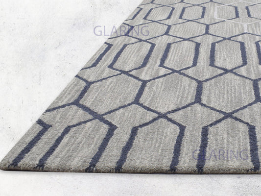 Hand-Knotted Modern Rug | Geometric Design in Ivory & Grey