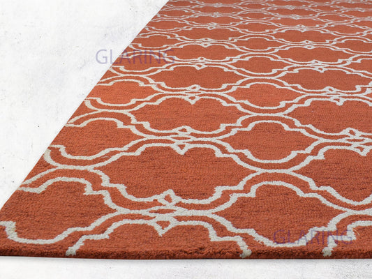 Handmade Modern Rug | Border Loop Design in Rust & Ivory