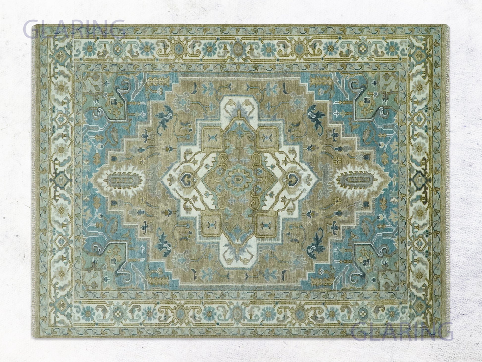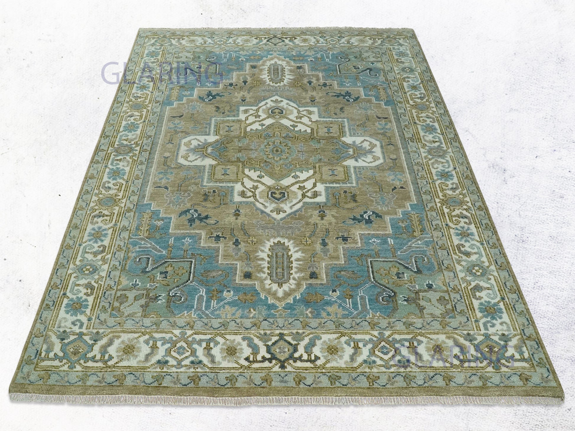 Hand-Knotted Traditional Rug | Heriz Design in Olive