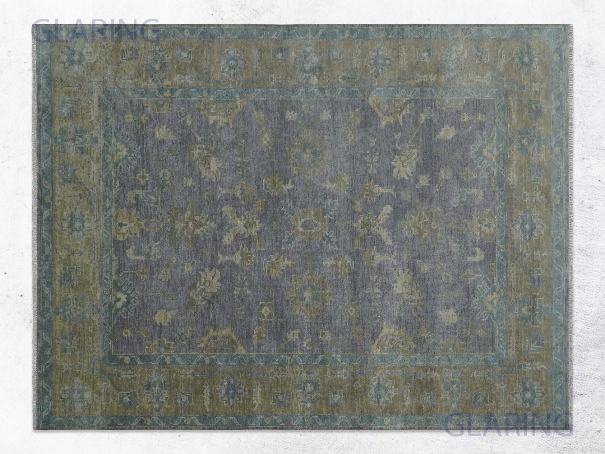 Handmade Oushak Rug | Oriental Design in Rust, Ivory & Blue