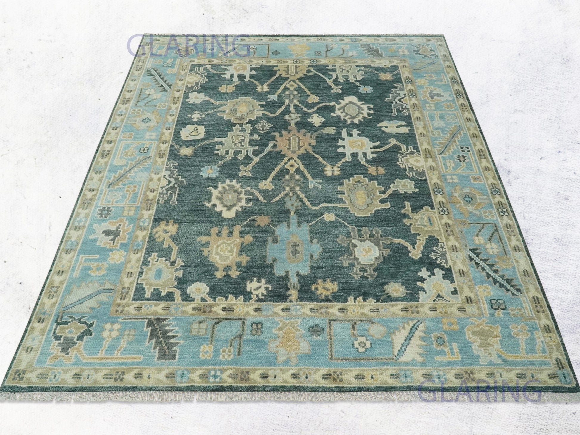 Hand-Knotted Traditional Rug | Oushak Design in Green & Blue