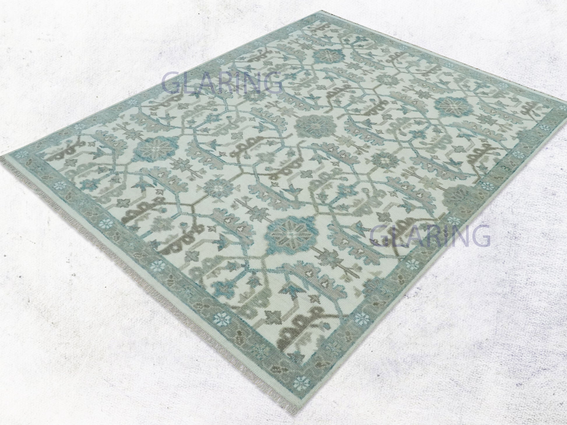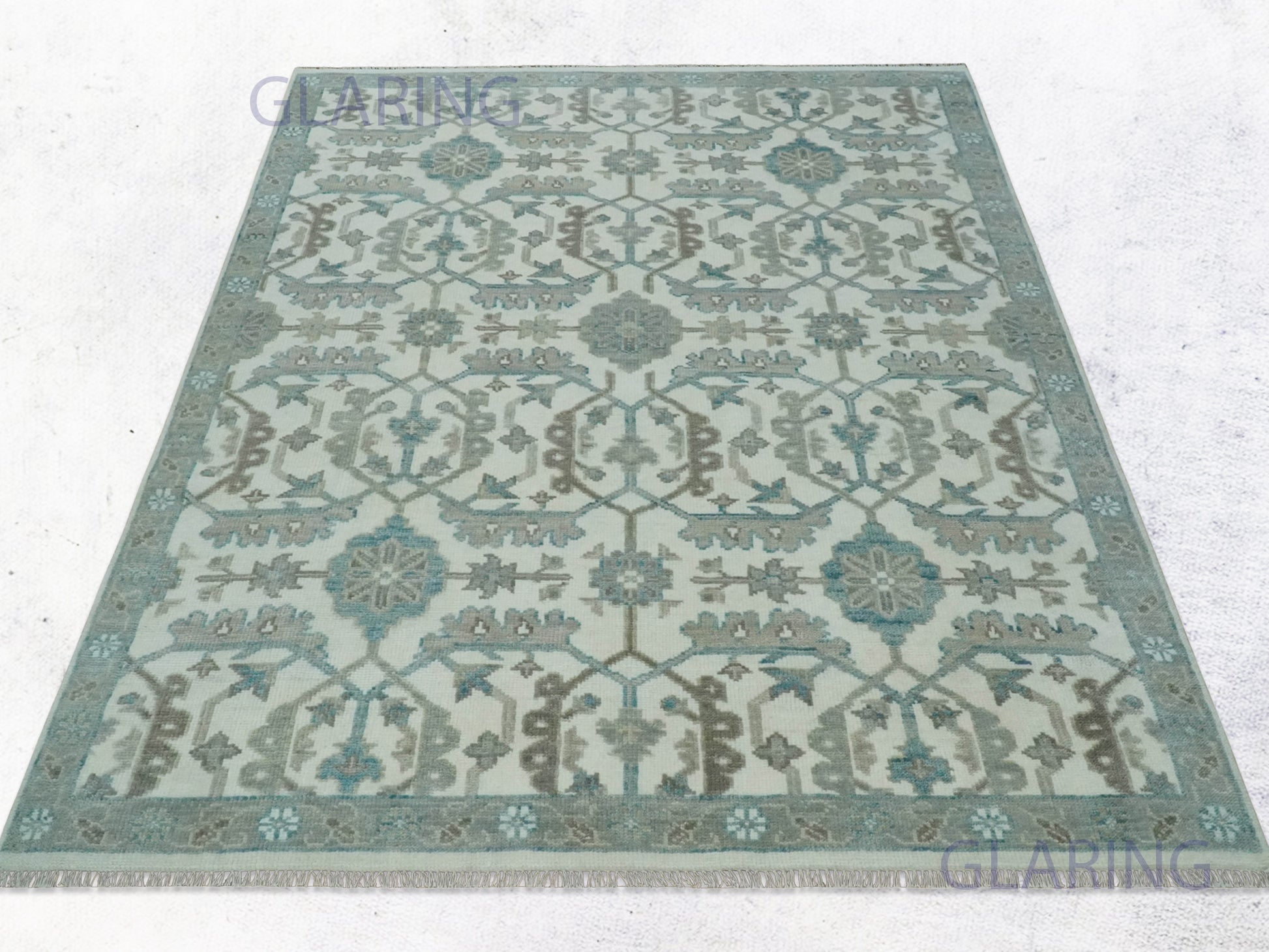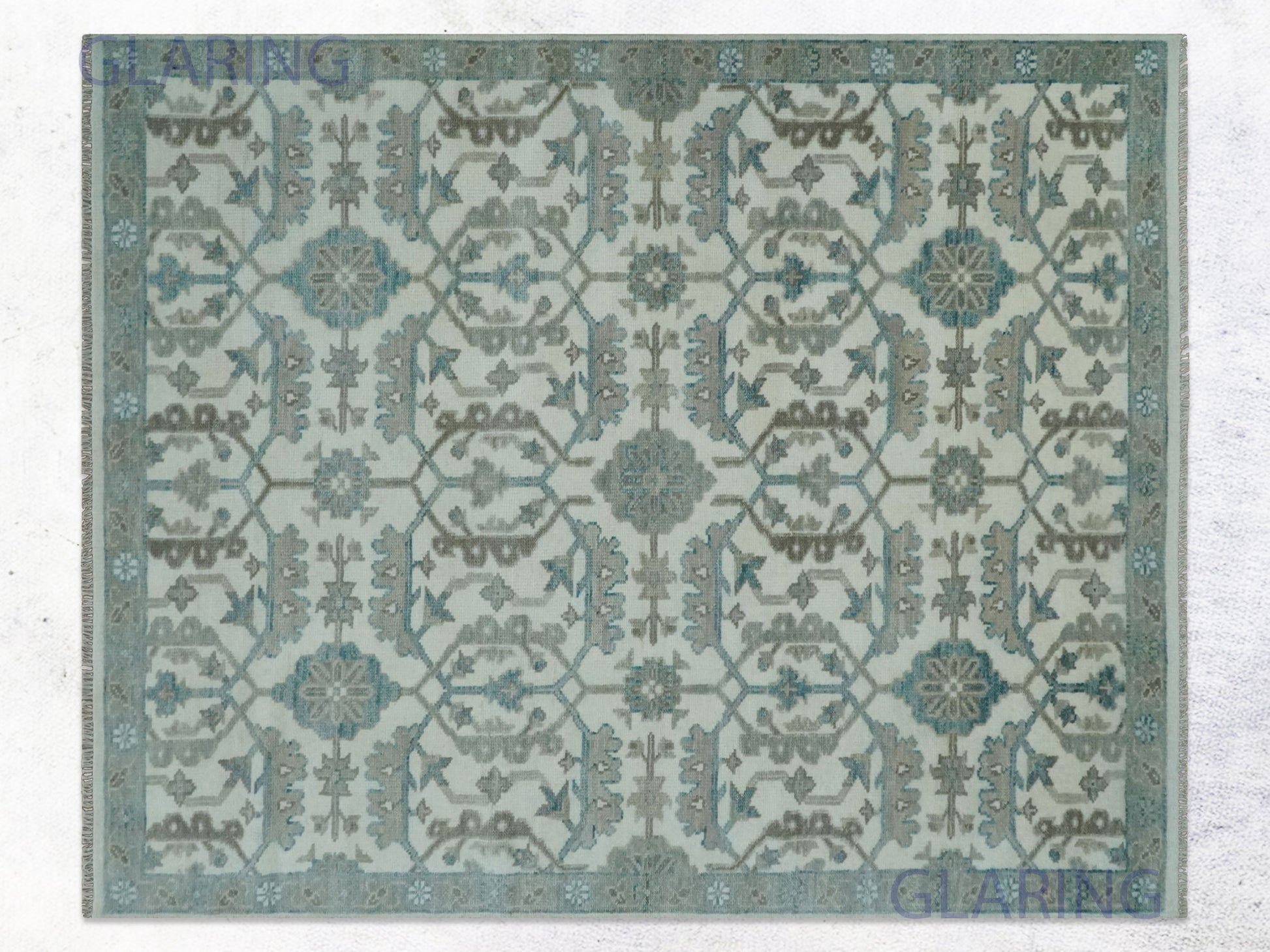 Hand-Knotted Traditional Rug | Oushak Design in Ivory & Grey