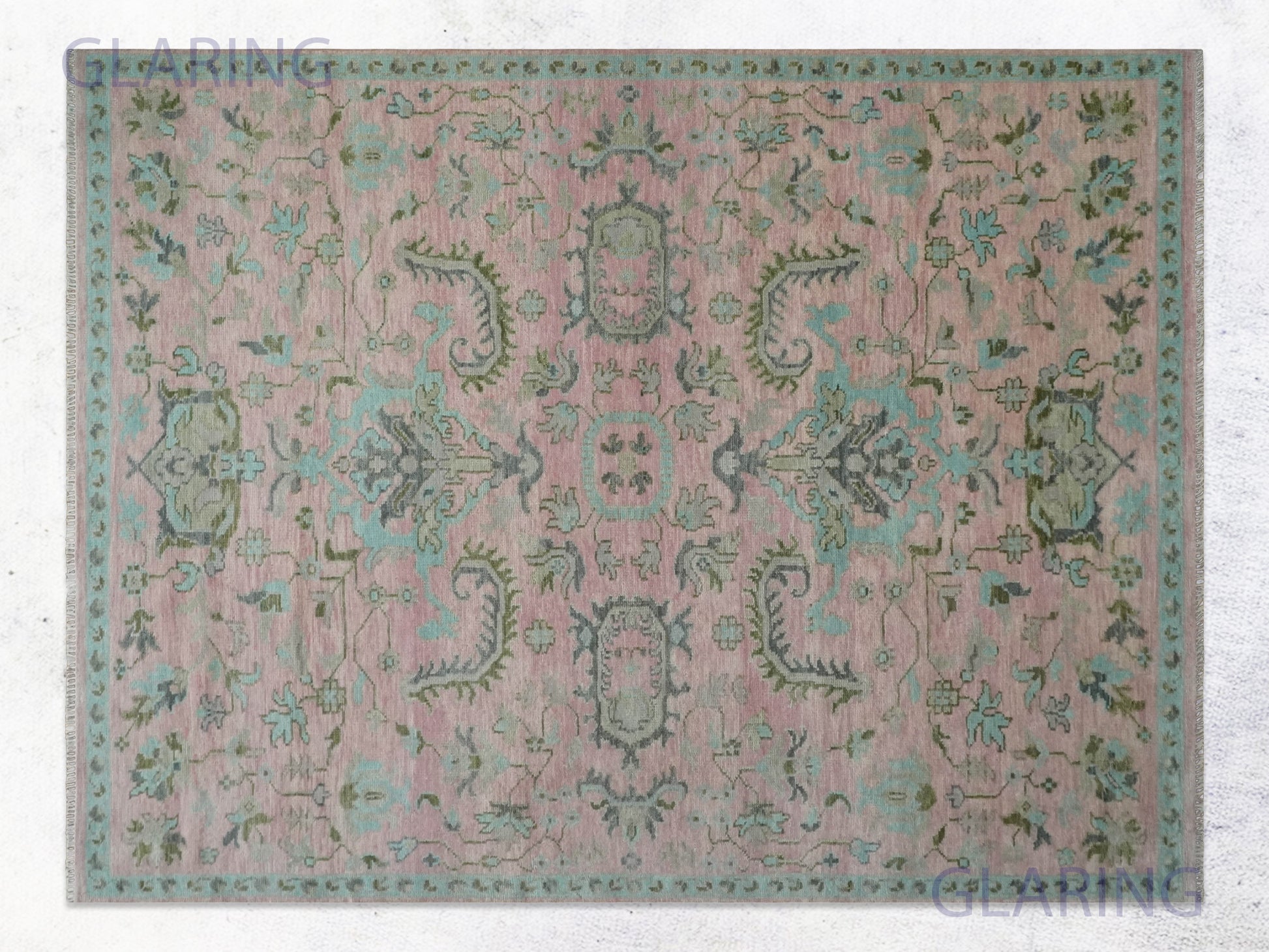 Hand-Knotted Traditional Rug | Oushak Design in Pink