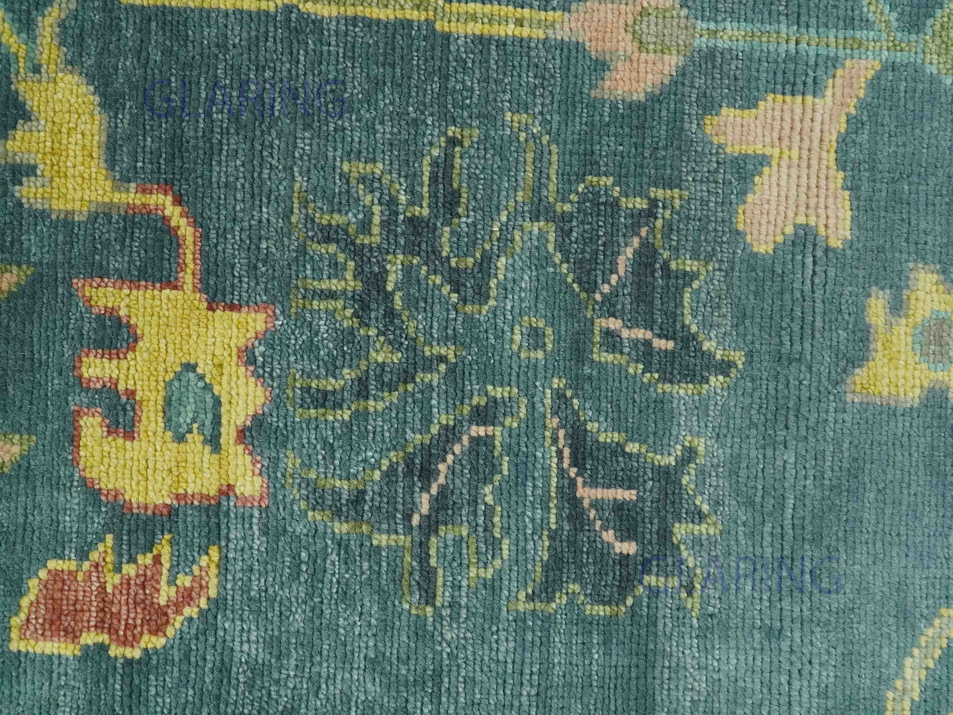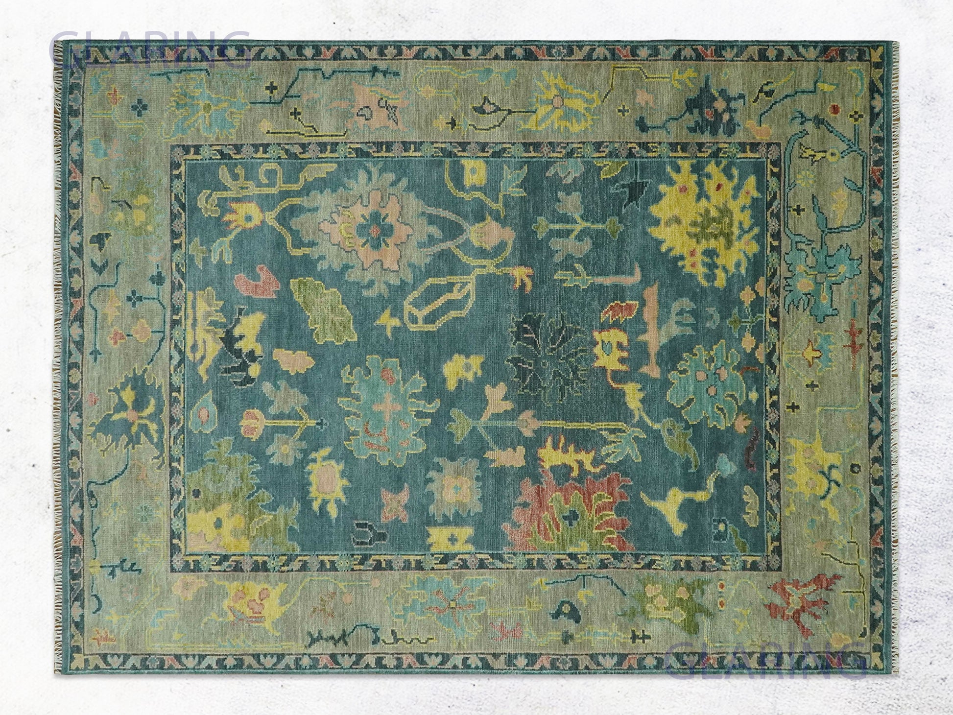 Hand-Knotted Traditional Rug | Oushak Design in Teal Blue