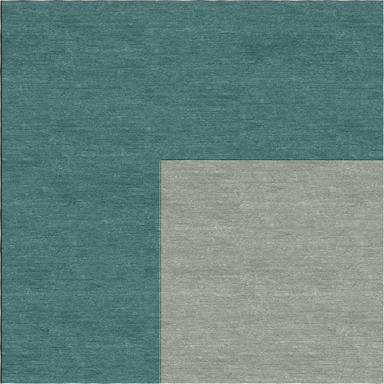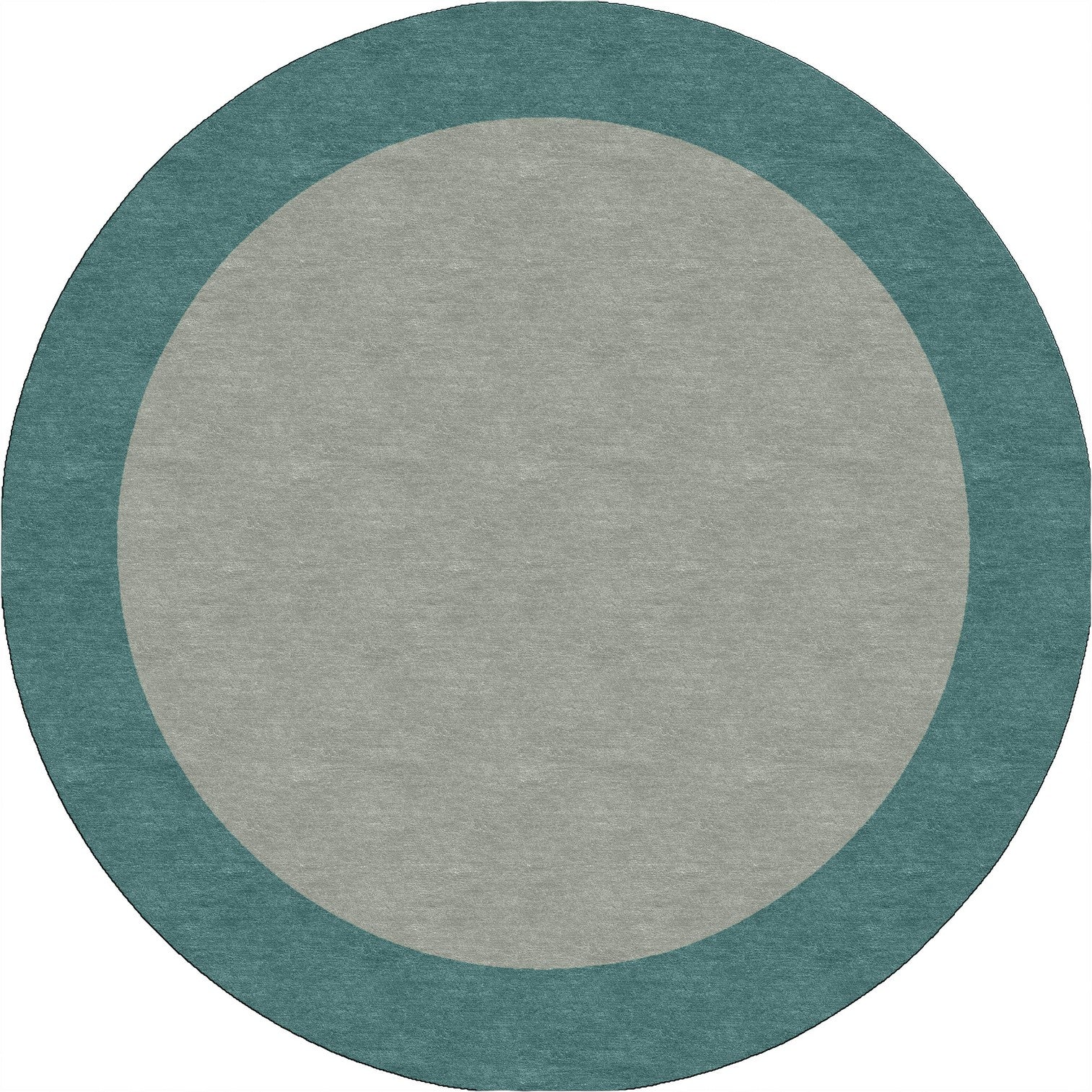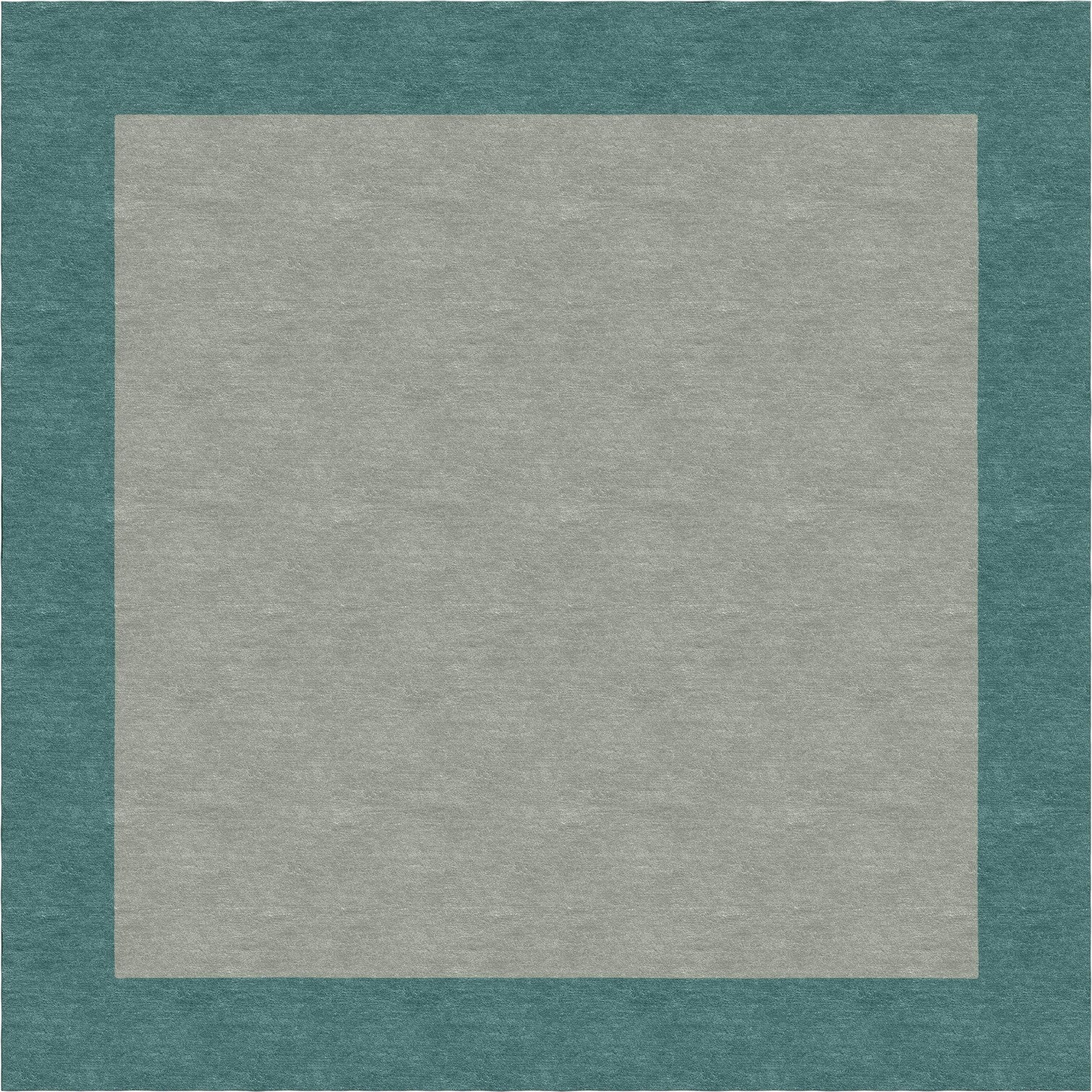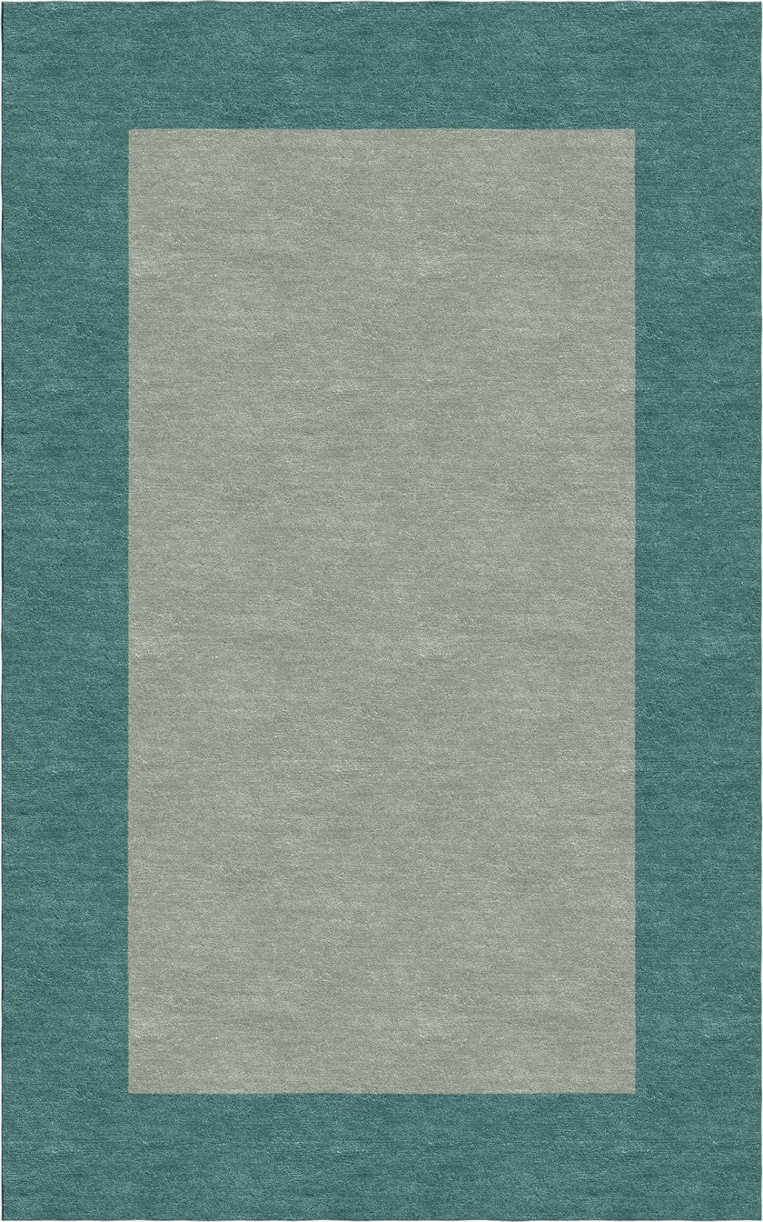 Handmade Hand-Tufted Wool Modern Border Silver Teal Green Area Rug