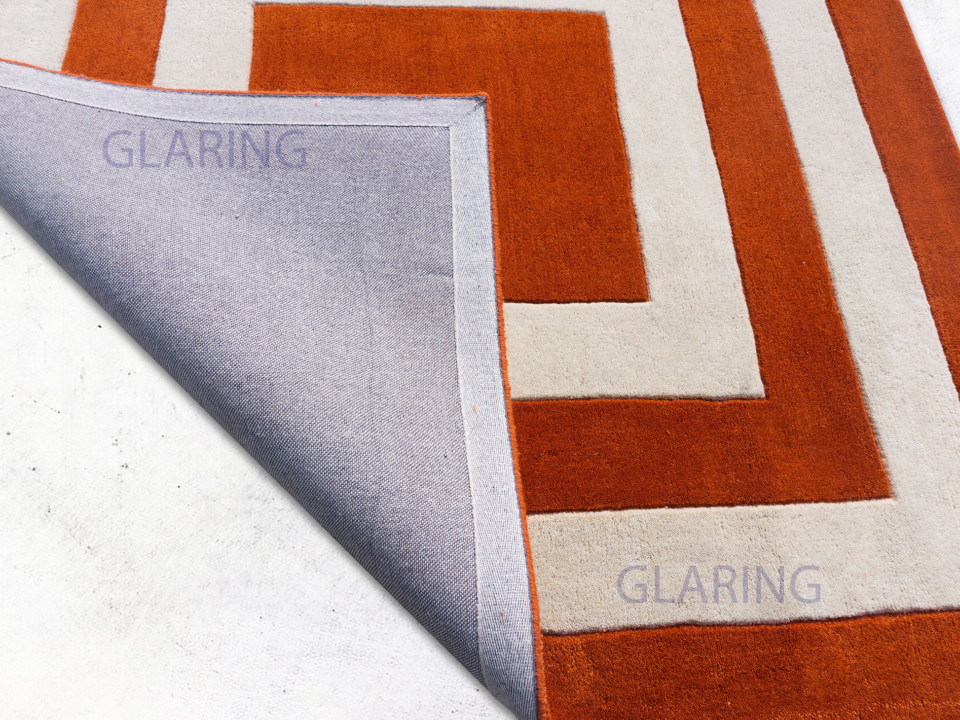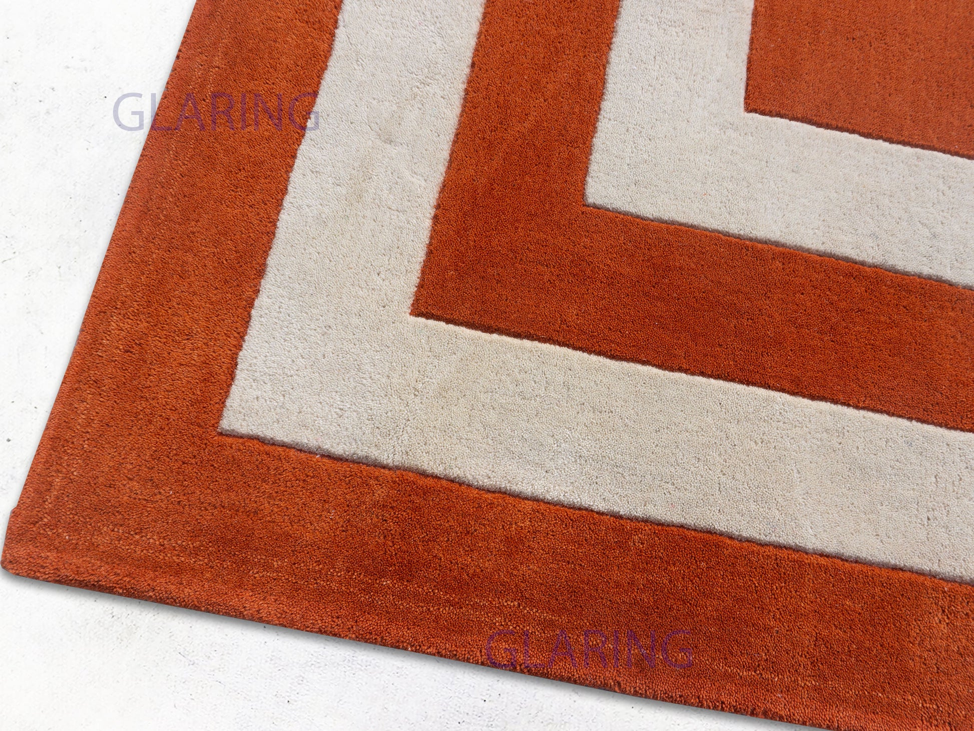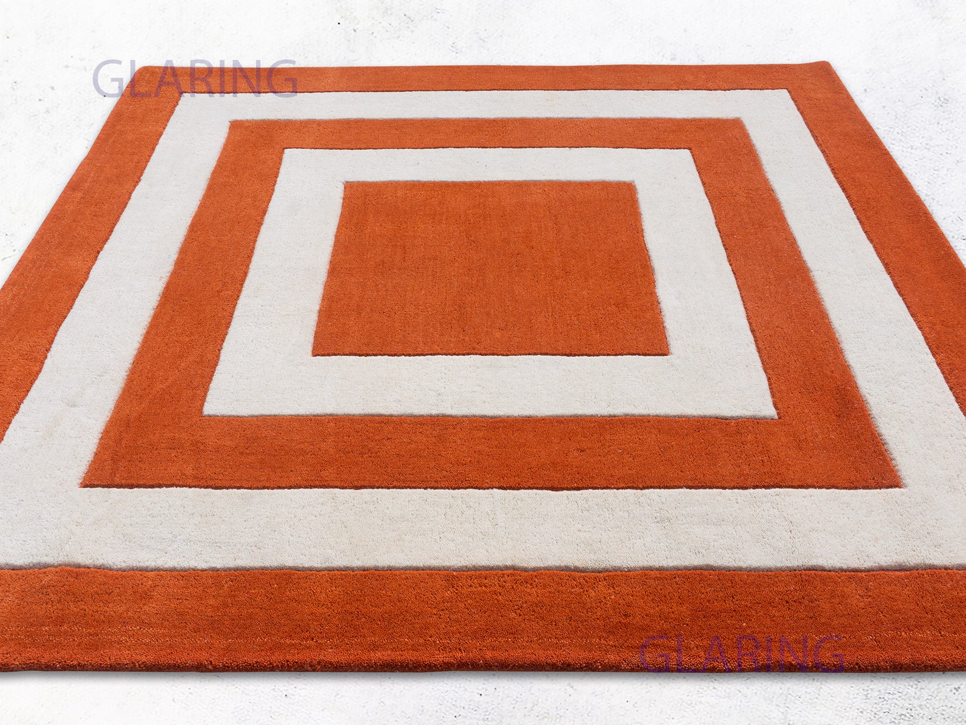 Handmade Modern Rug | Border Design in Orange & Ivory