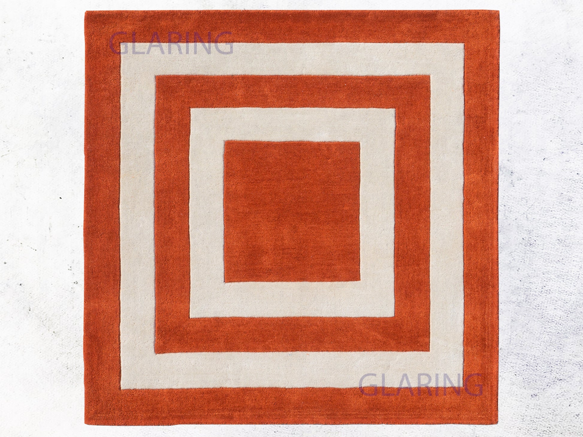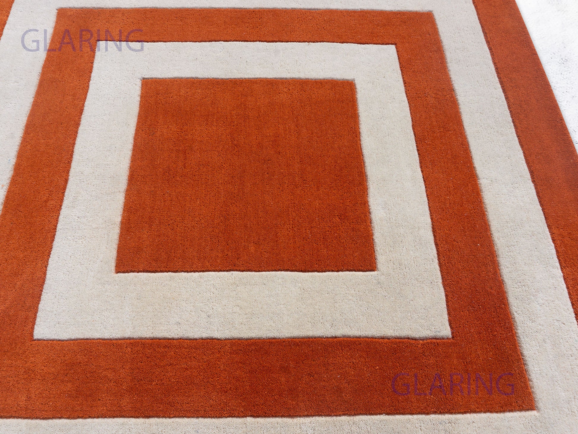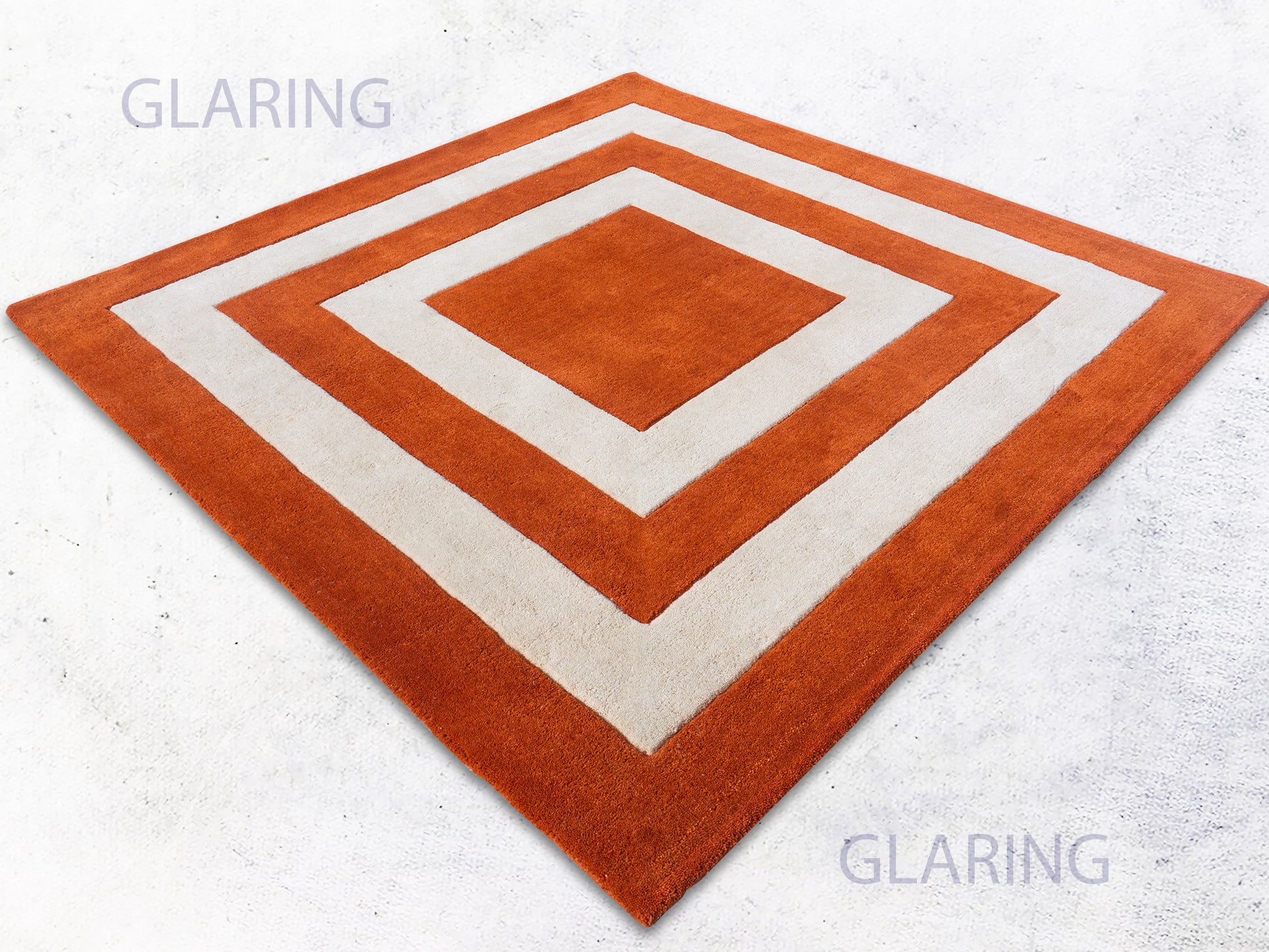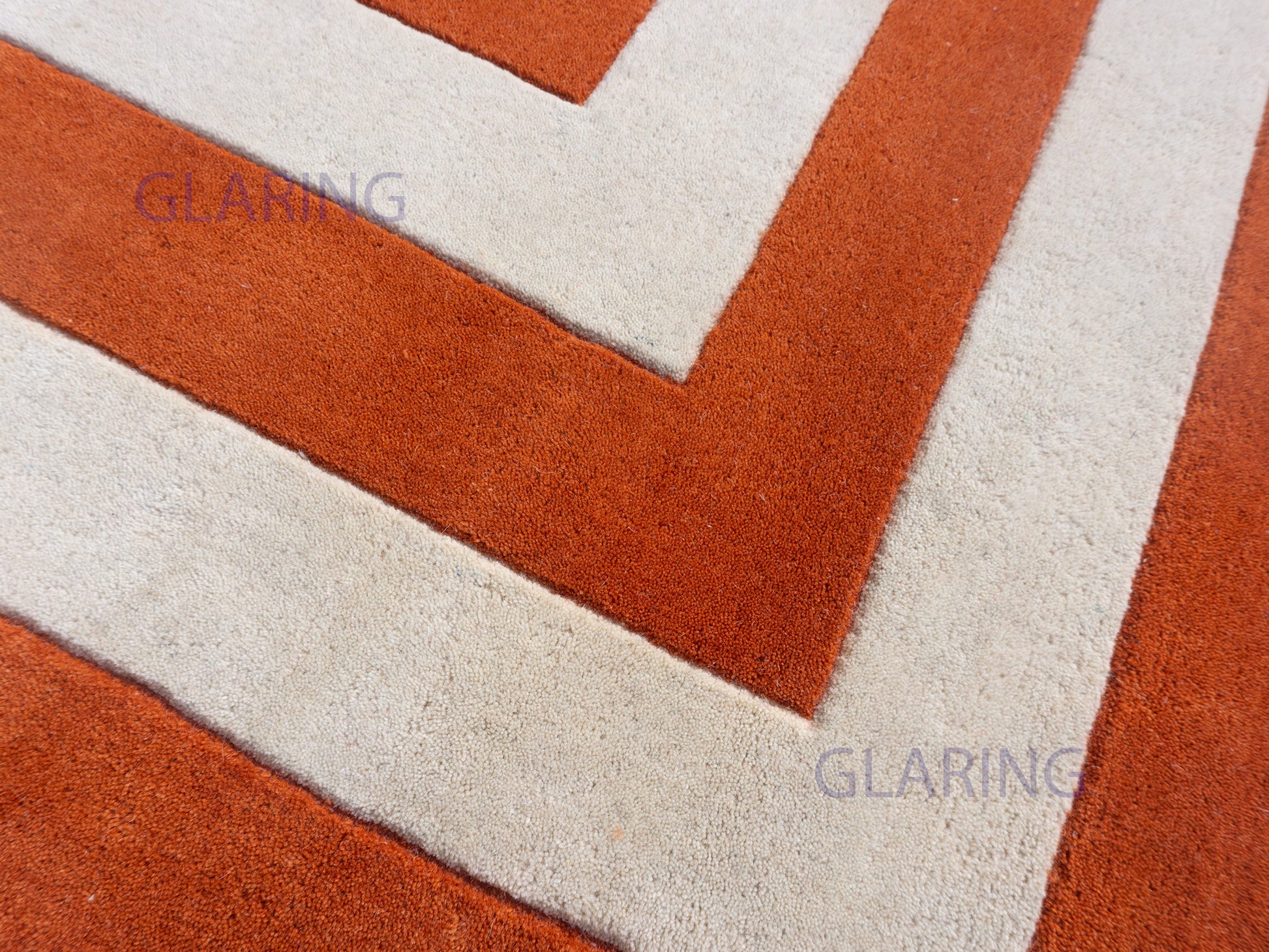 Handmade Modern Rug | Border Design in Orange & Ivory