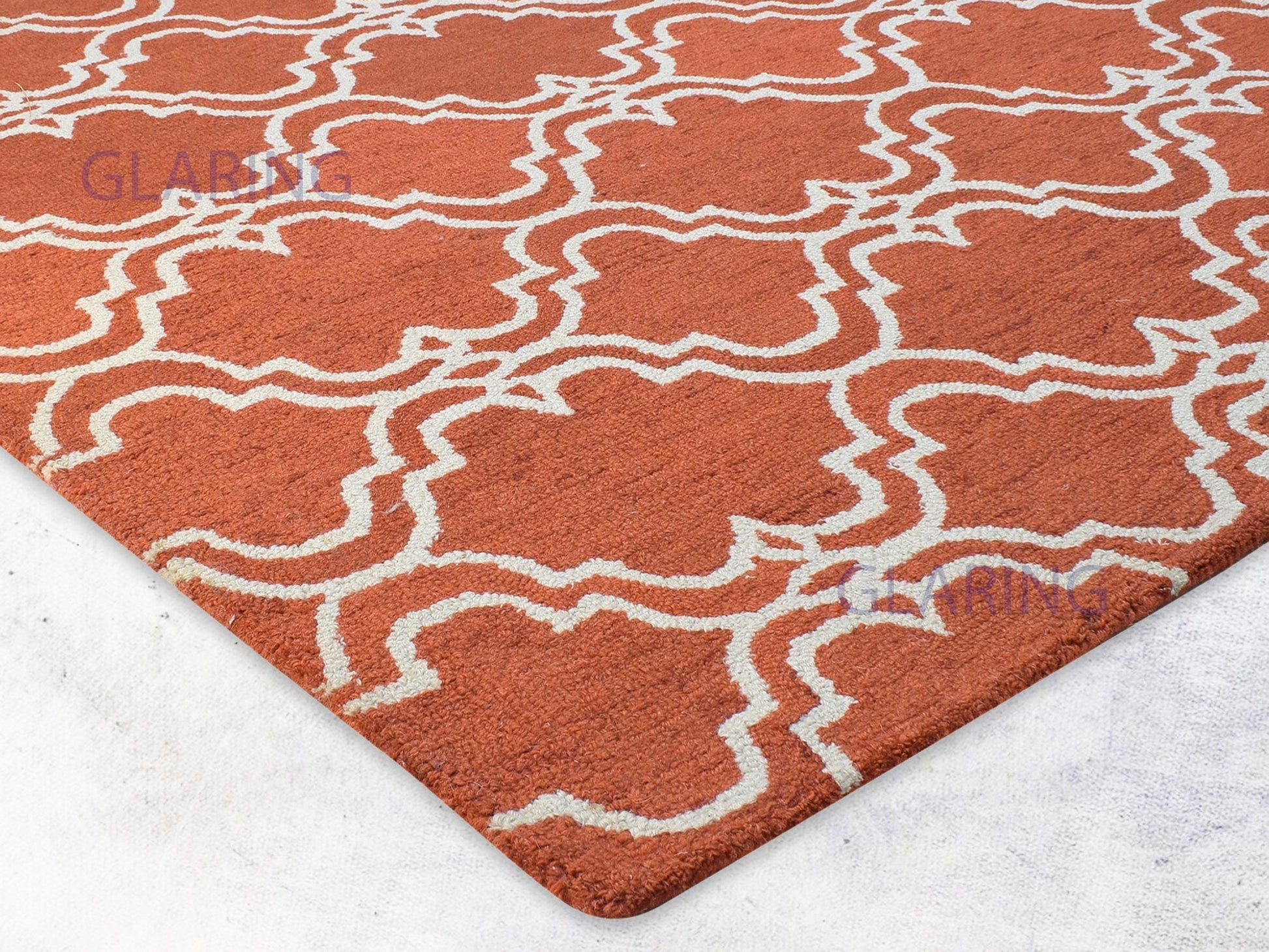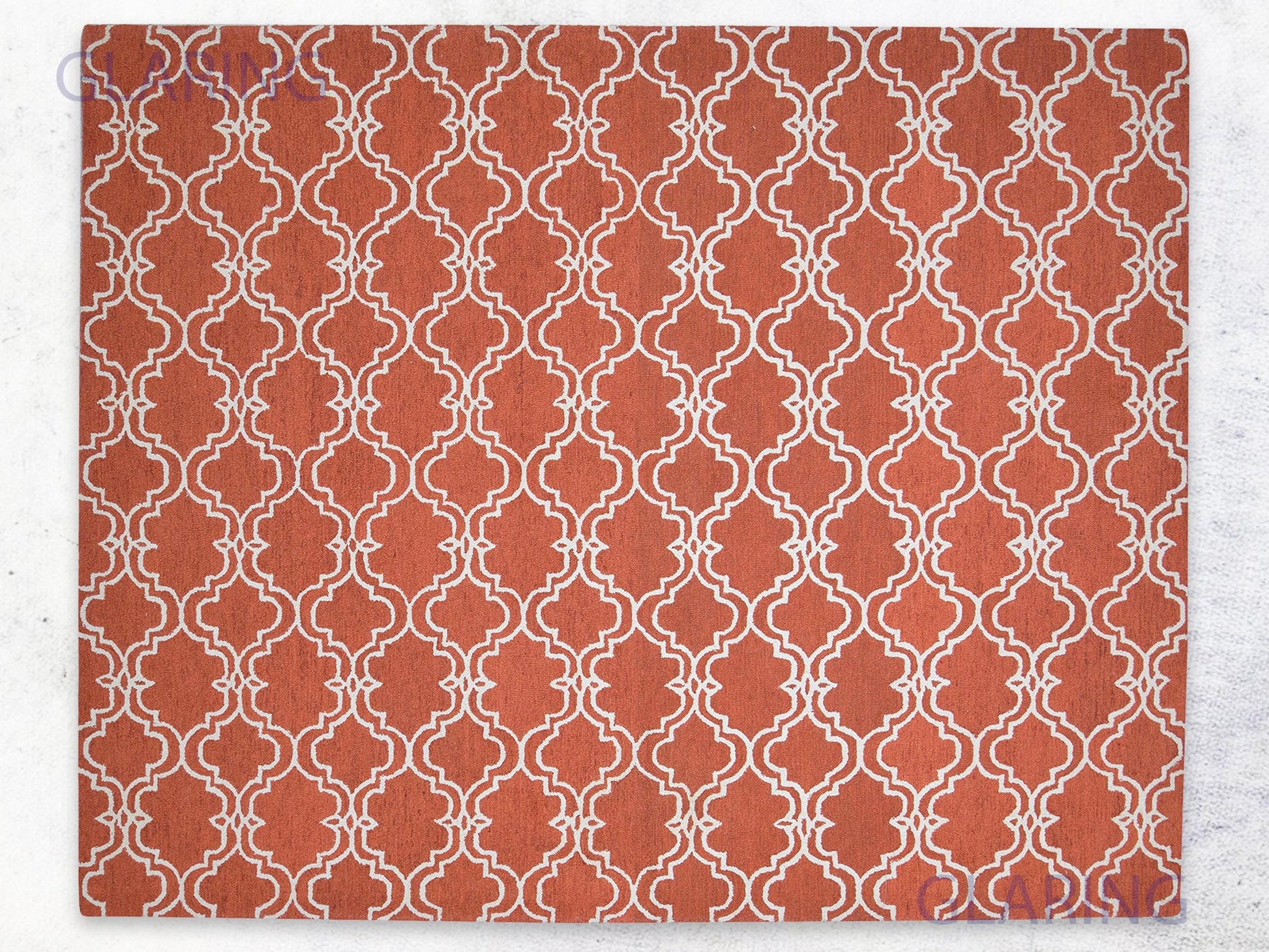 Handmade Moroccan Rug | Scroll Tile Design in Orange & Ivory