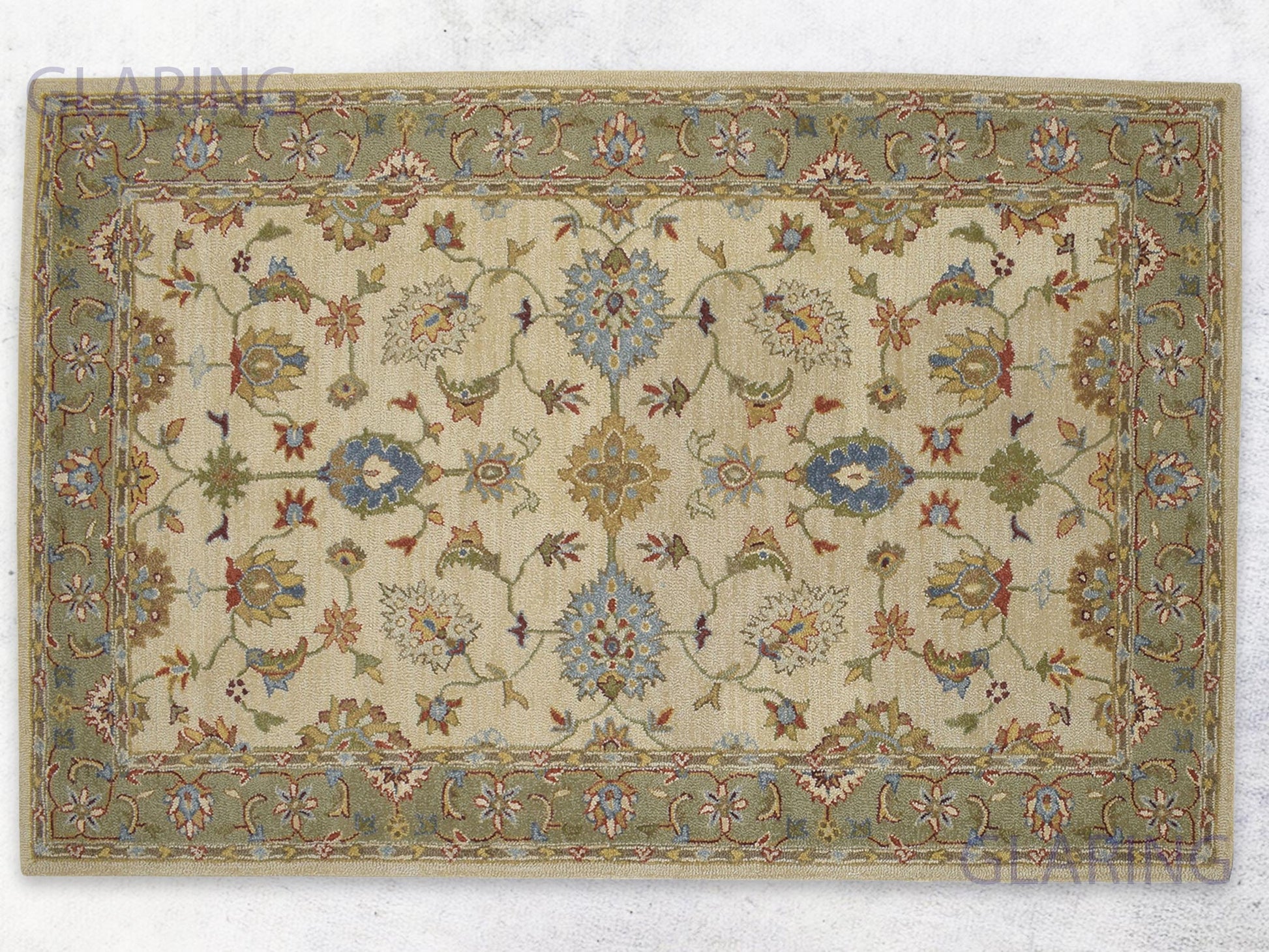 Handmade Oushak Rug | Floral Design in Beige & Green