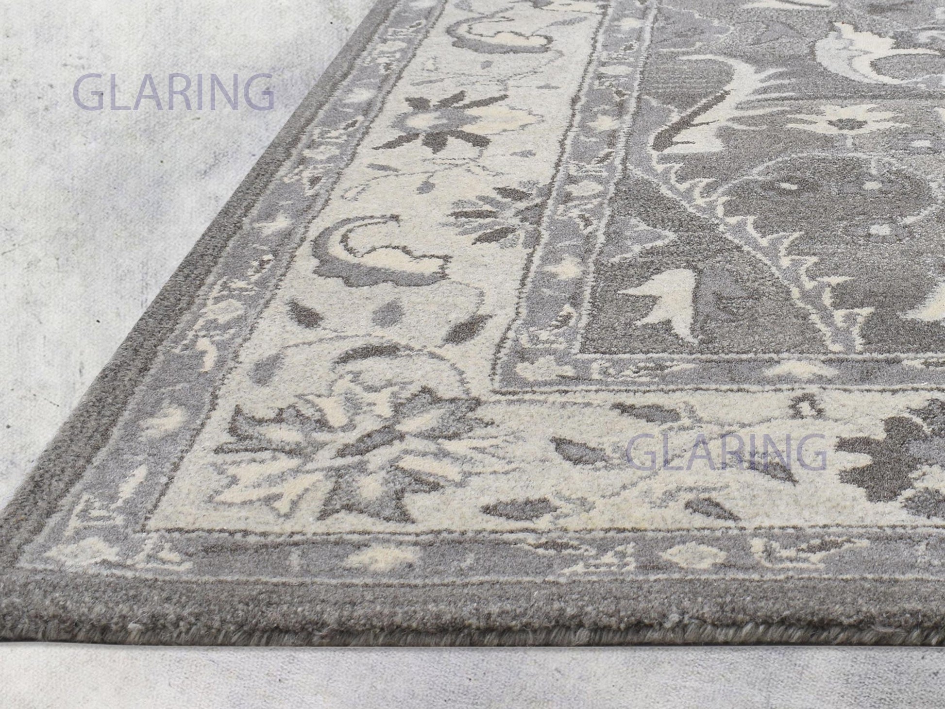 Handmade Wool Tufted Oushak Grey Oriental Rug for Living Room & Bedroom custom size rug
