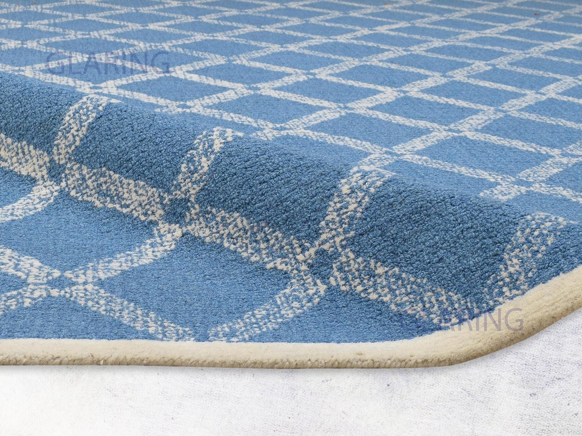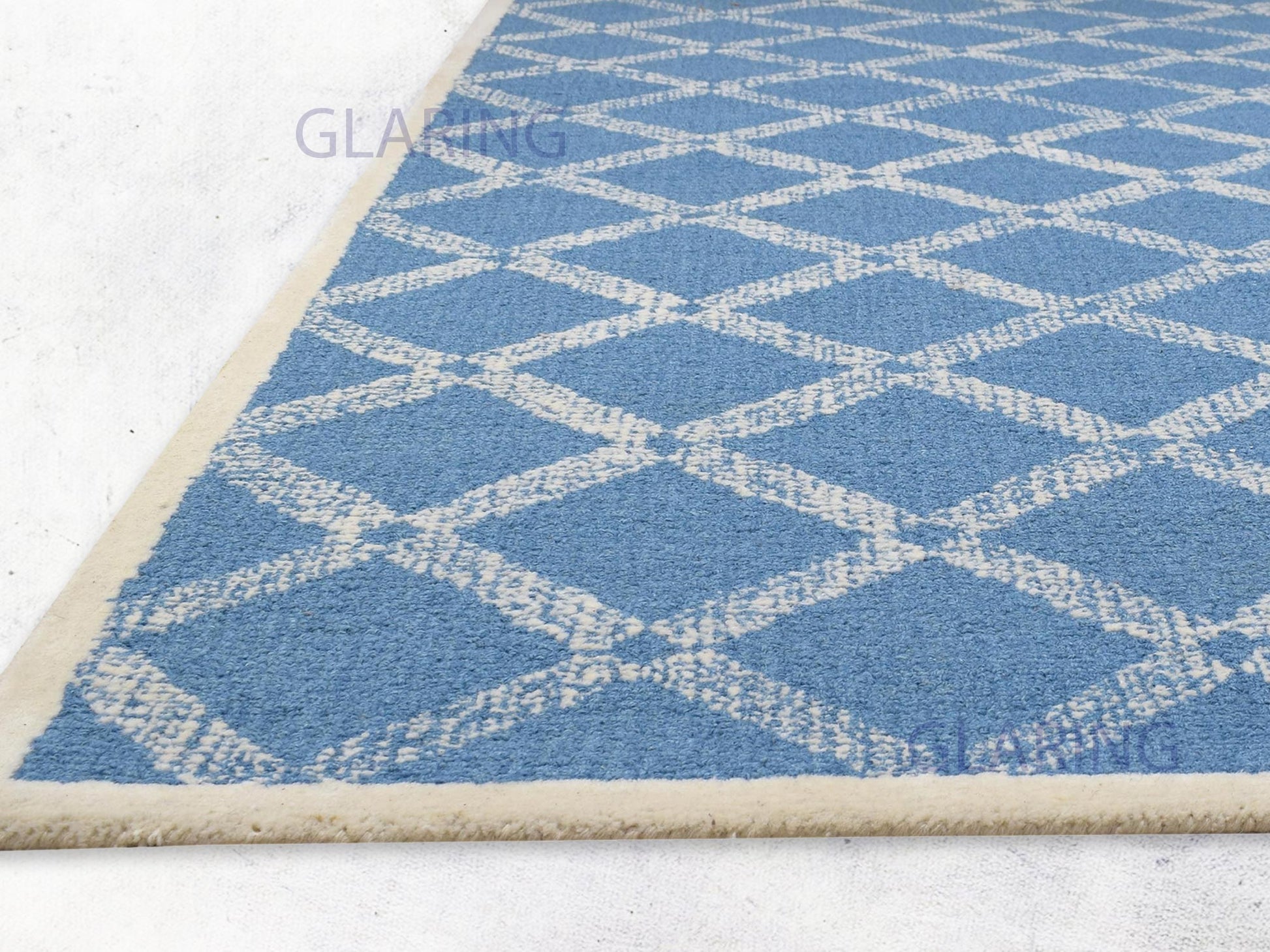 Handmade Scandinavian Rug | Geometric Design in Blue & Ivory