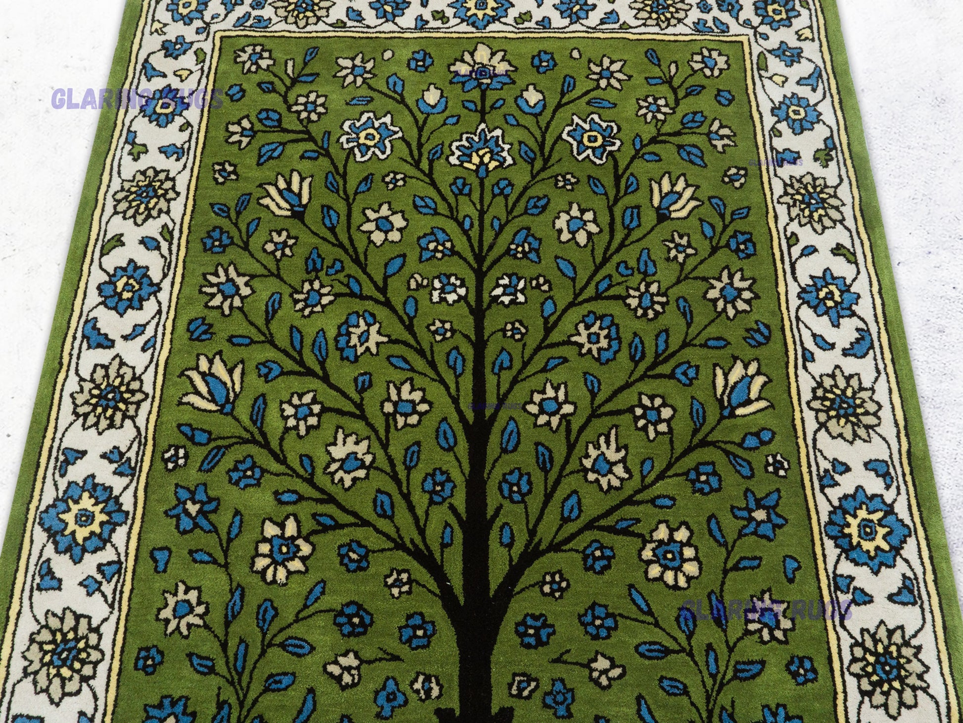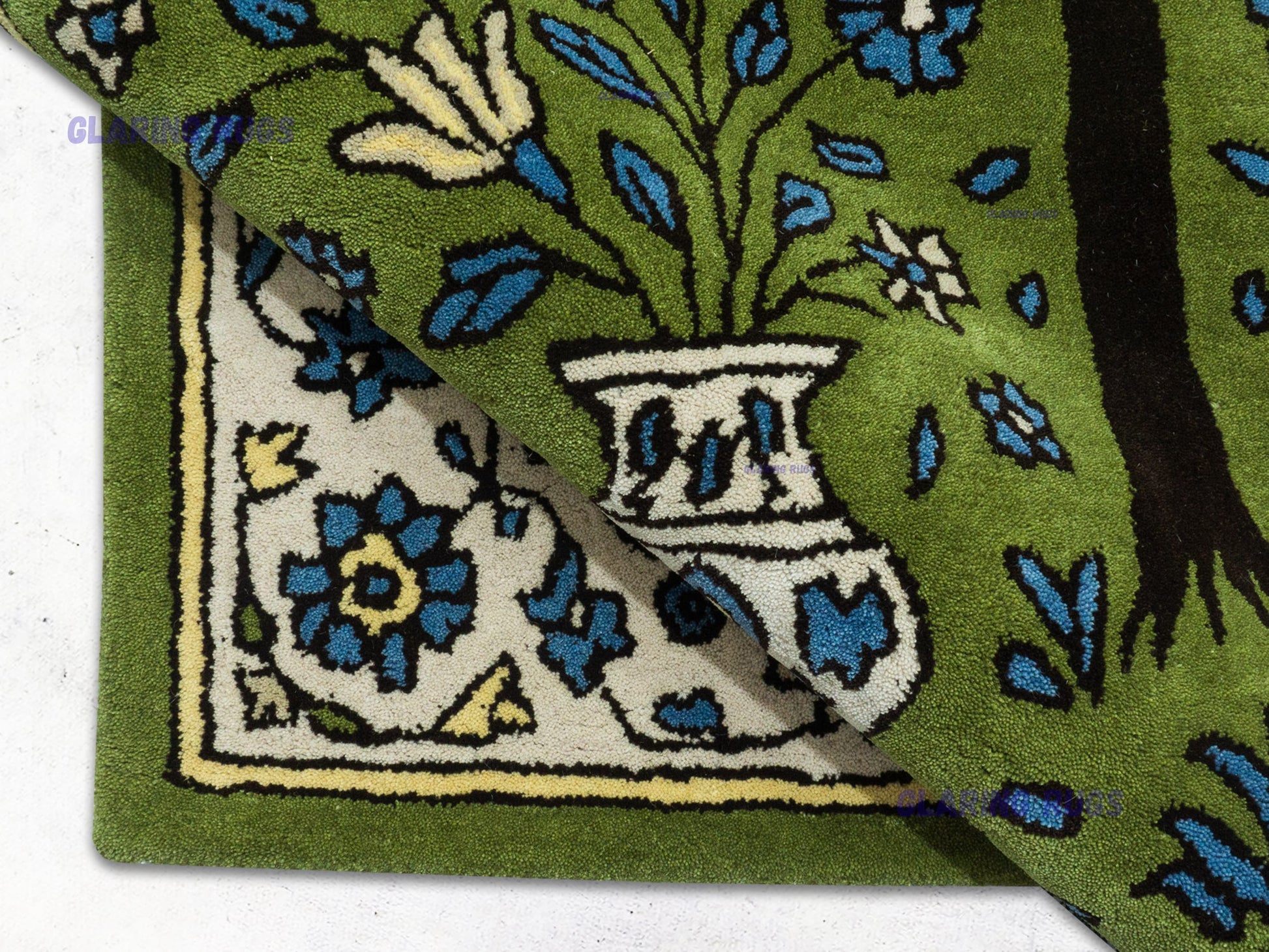 Handmade Wool Tree of Life Rug – Green Persian Floral Rug